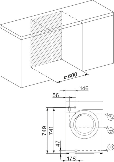 Genom ett Watercontrol-system styrs vattentilloppet av en vattennivåsensor. Om den normala vattennivån inte nås, avbryts tilloppet. Om det hamnar vatten i maskinens inre, stängs maskinens tilloppsventil och vattnet som befinner sig i tvättmedelsbehållaren pumpas bort. Dessutom känner en nivåvakt i bottenplåten av om vatten rinner ut.