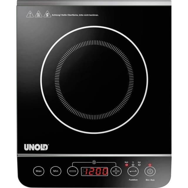 Unold Elegance 58105 Induktionsplatta med detektering av pannor, Temperaturförval, TimerfunktionAutomatisk spänningsanpassning · Automatisk avstängning efter ca 2 timmar · Manövreringsknappar med touchfunktion och stora digitala siffror · 6