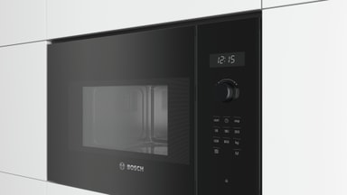 Tillaga, tina upp och värm upp din mat snabbt och effektivt med Bosch Series 6 mikrovågsugn BFL524MB0 som kommer med en 25,5 cm tallrik, 5 värmelägen och belysning.