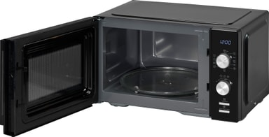 Denna mikrovågsugn har en minimalistisk svart design och en glasvridtallrik som hjälper till att jämnt tillaga din mat.