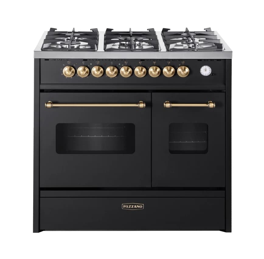 Pazzano - Cuore - Gasspis 90 cm (2 ugnar) (Svart/Borstad mässing)Serien Cuore från Pazzano är skapad för dig som söker en spis med karaktär – där inslag av italiensk spisdesign möter hög prestanda och genomtänkta funktioner.Läs mer om produkten