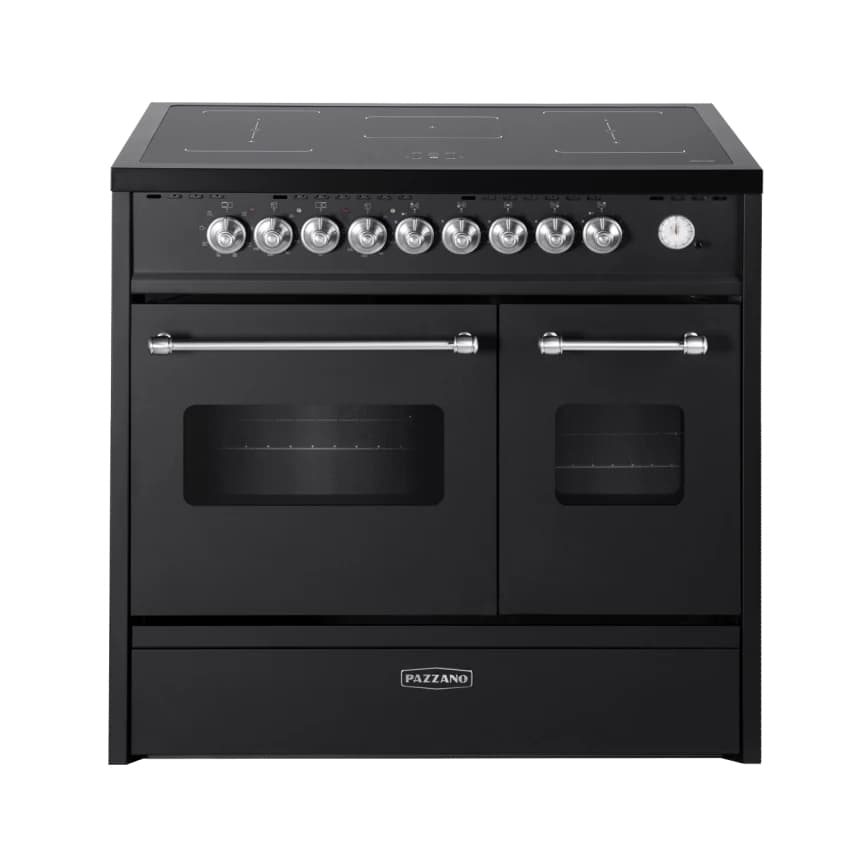 Pazzano - Cuore - Induktionsspis 90 cm (2 ugnar) (Svart/Borstat stål)Serien Cuore från Pazzano är framtagen för dig som söker en spis med karaktär, där inslag från italiensk spisdesign kombineras med hög prestanda och genomtänkta funktioner.Läs mer om produkten