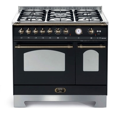 Vår storsäljande gasspis från italienska Lofra! Denna spis tillhör Lofras premiumkollektion Dolce Vita. Spisen är handtillverkad i norra Italien, med vackra vred och handtag i brons, svart yta och rostfritt stål rakt igenom.Läs mer om produkten