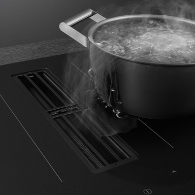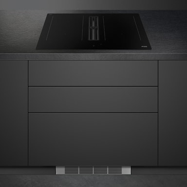 Den integrerade fläkten anpassar sig automatiskt efter hällens effekt och säkerställer alltid optimal utsugning – tyst, effektivt och helt utan manuell justering.