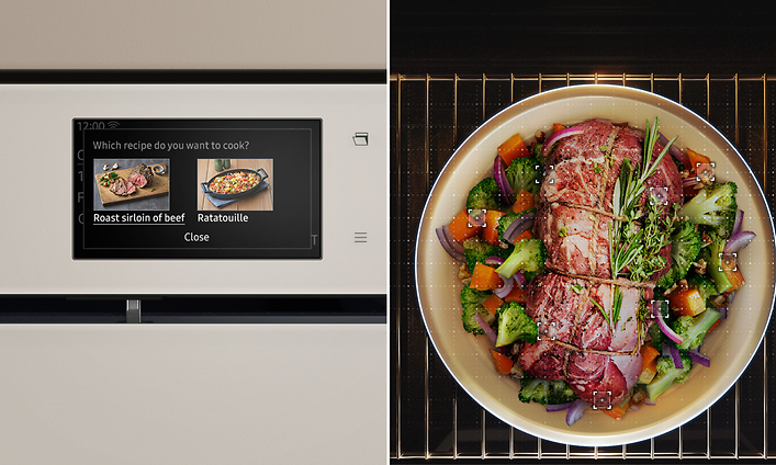 Denna ugn har en inbyggd kamera1 som gör det lättare att hålla koll på maten i ugnen. Genom att ansluta ugnen till SmartThings-appen2 kan du filma och följa hela tillagningsprocessen via mobilen. Det innebär att du kan hålla koll på maten direkt från soffan, utan att behöva öppna ugnsluckan eller släppa ut varmluft i onödan. Du kan även slå på/av ugnen, välja funktioner, ställa in timern och ändra inställningar.