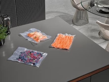 Miele vakuumpåsar är utvecklade för speciella behov: De är värmebeständiga, tål kokning och kan inte rivas sönder, är lämpliga för livsmedel och innehåller inte mjukgörare – så att alla livsmedel förvaras säkert. Extra viktigt: Ingen smak överförs till innehållet i påsen. I leveransen får du plastpåsar i olika storlekar. Behöver du fler? Det finns fler att beställa på Miele Shop.