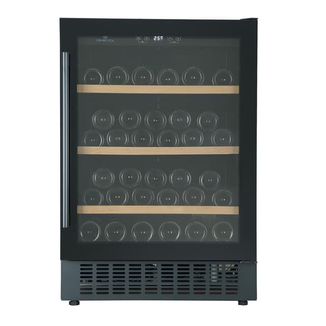 Med denna helt nya modell får du ett läckert enzons vinkylskåp (5-20°C) som har en svart glasdörr med UV-fritt glas och plats till 54 flaskor av Bordeaux-typen.