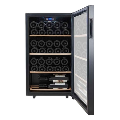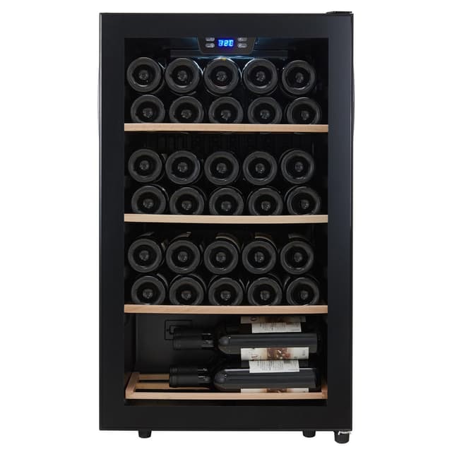 Det vackra vinskåpet har plats för dina favoritflaskor i en temperaturzon som gillar att ligga och mogna för rätt tillfälle.