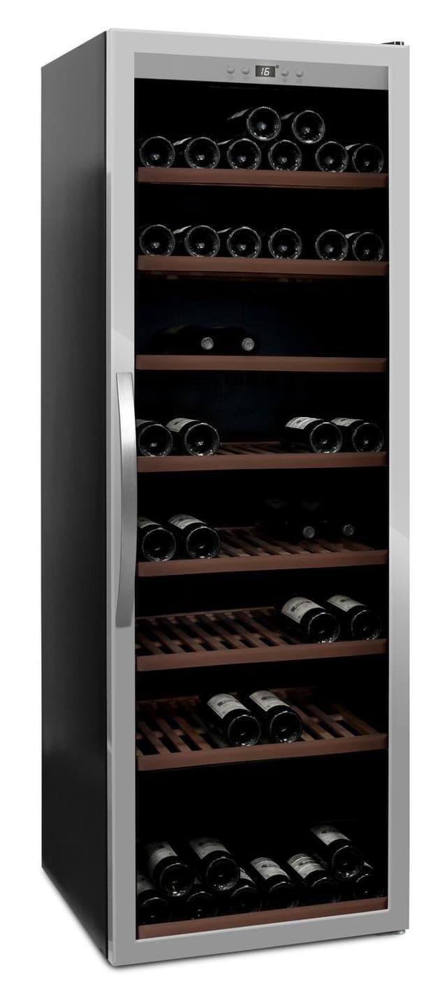 Vinkylens smidiga funktioner ger dig det där lilla extra. Trähyllorna ligger på räls vilket ger extra stabilitet och skapar en mjuk rörelse när du drar ut hyllorna för att välja den rätta flaskan. Vinkylens funktioner styrs med äkta knappar och inställningarna visas på digital skärm.