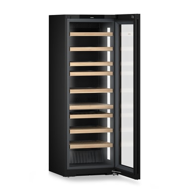 Liebherr Vinidor WPgbi 7472-20 001: Fristående vinförvaring i svart glas med UV-skydd, två temperaturzoner, smart home-kompatibilitet och plats för 204 flaskor. Säkerställer optimal förvaring med avancerad luftcirkulation och kolfilter.Läs mer om produkten
