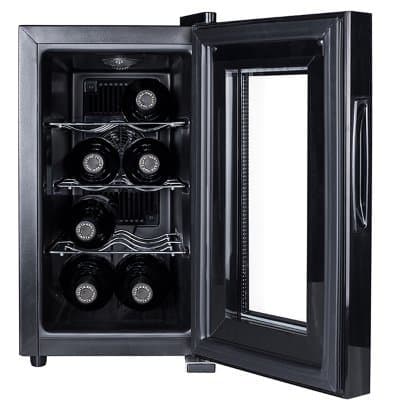 Ditt vin alltid i rätt temperatur? Detta är nu möjligt med denna kompakta vinkylare från Tristar. Du kan lagra upp till 8 flaskor. Kyler till 16° under omgivande temperatur. På grund av det termoelektriska kylsystemet uppstår endast låg vibration.